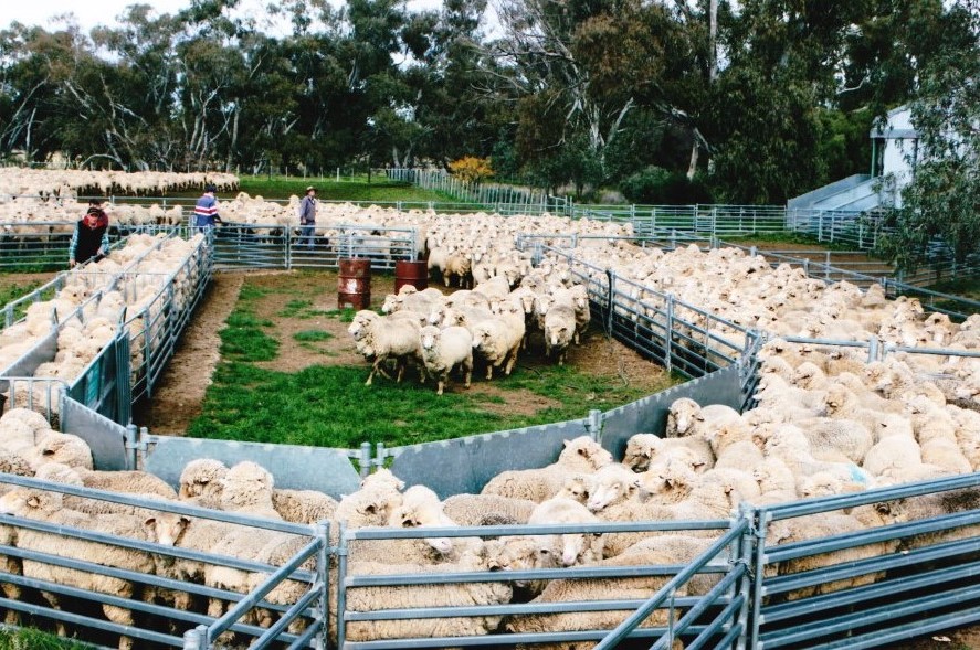 Ross went out to Sleigh Pastoral Co.’s property “Kooringal”, Jerilderie, home to Andrew and Julie Sleigh, to class their 14 month old ewes. He arrived there at 8 o’clock, the frost was just disappearing off the ground! There in front of him was 2350 young ewes, as far as the eye could see, a daunting task. He said to himself “I have to handle every one of these ewes”.